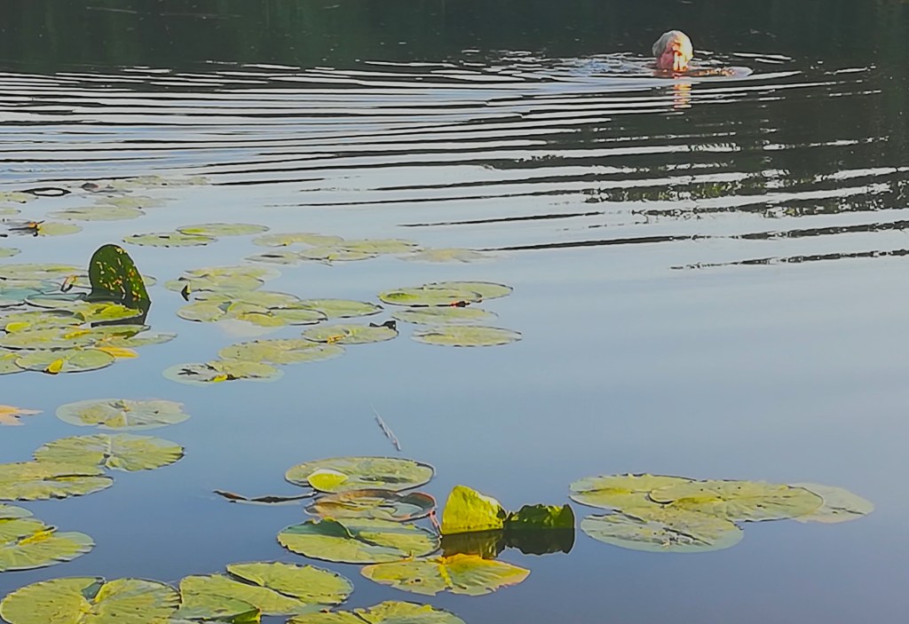 Deze zomer heb ik veel gezwommen, zowel – op stille momenten – in het plaatselijke verwarmde buitenbad, als in het weidse polderwater, ver buiten het dorp. Zwemmen is voor mij meer dan het oefenen van mijn lijf. Ik voel me  heerlijk gedragen door het water.
